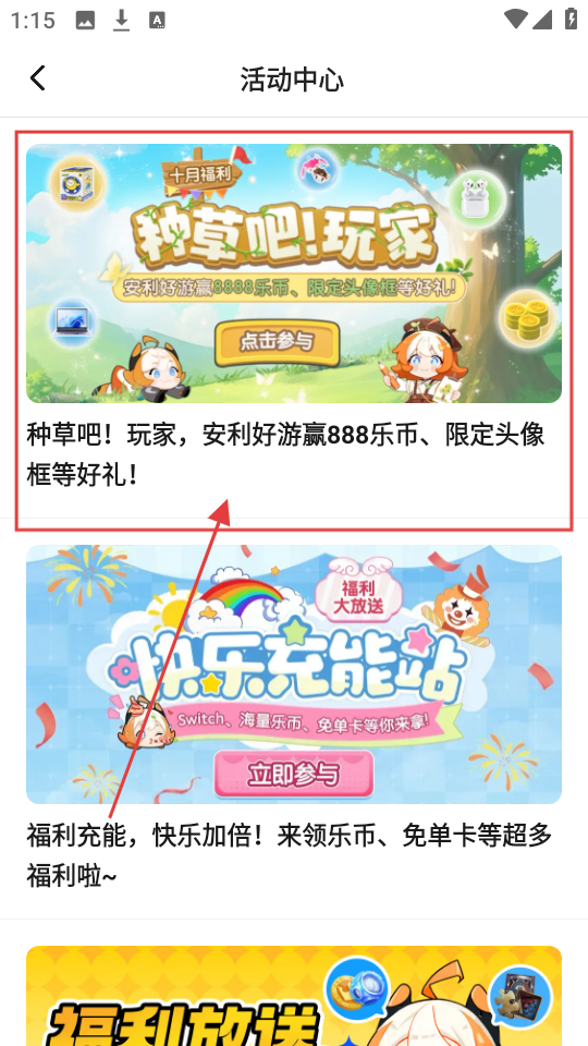 2、进入活动中心页面后,若想参与“种草吧!玩家”活动,点击对应的活动入口,就能进入该活动页面啦。