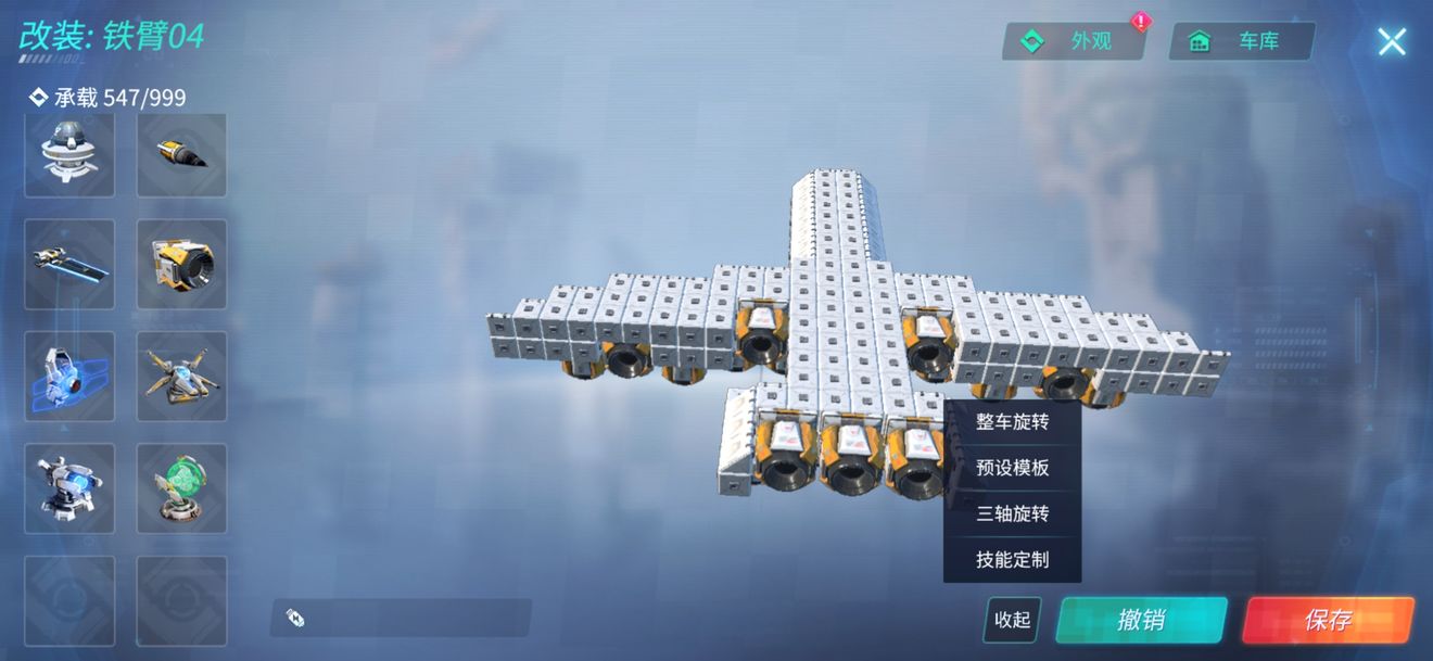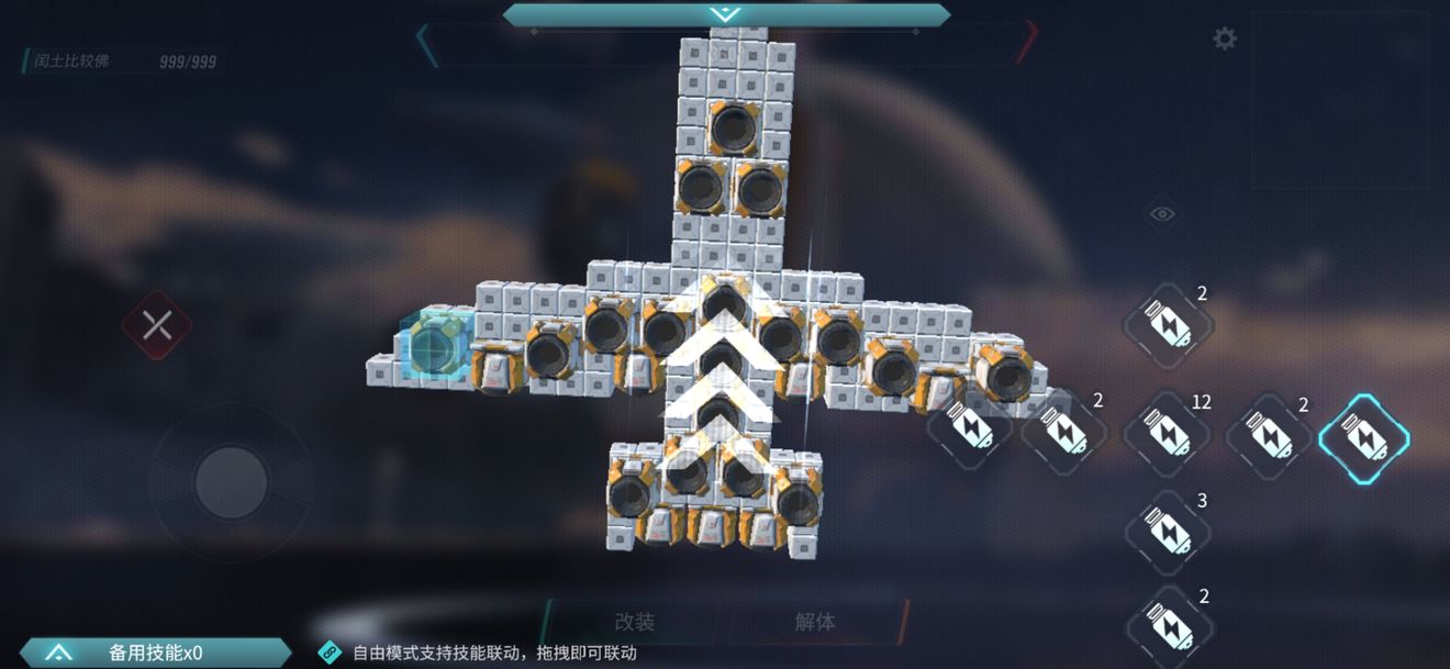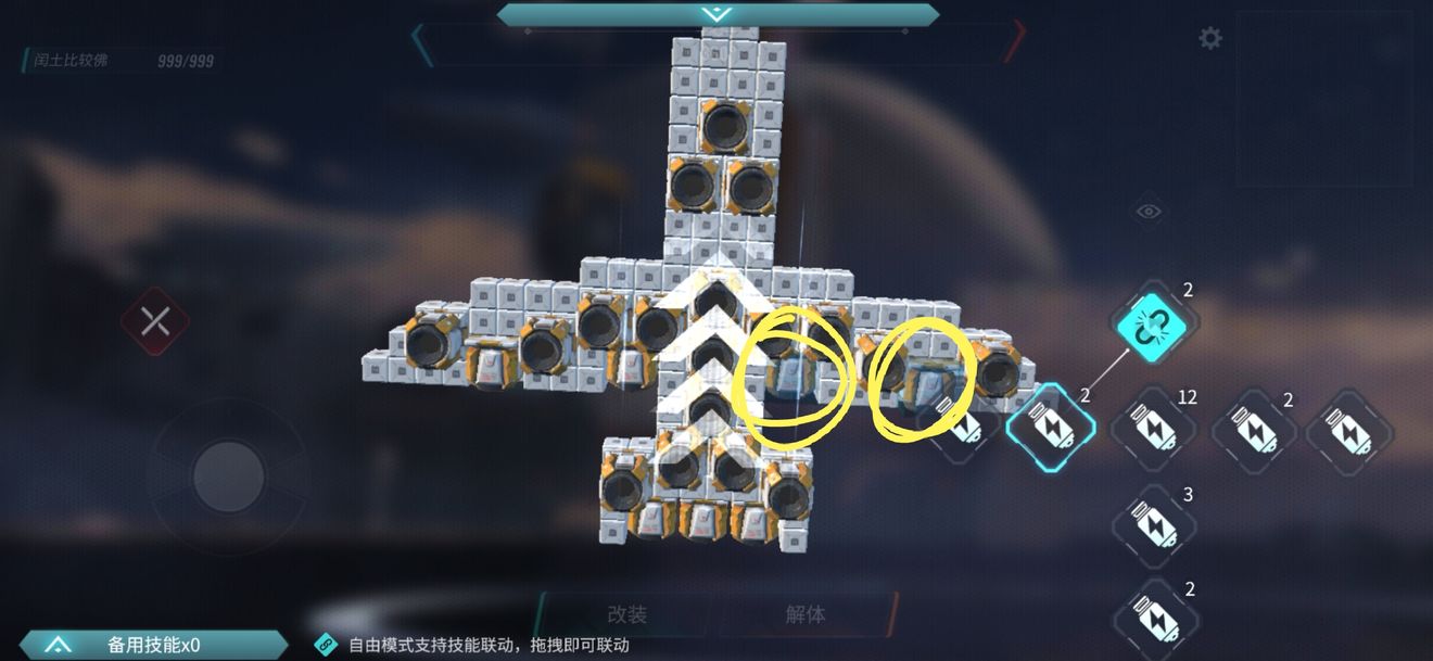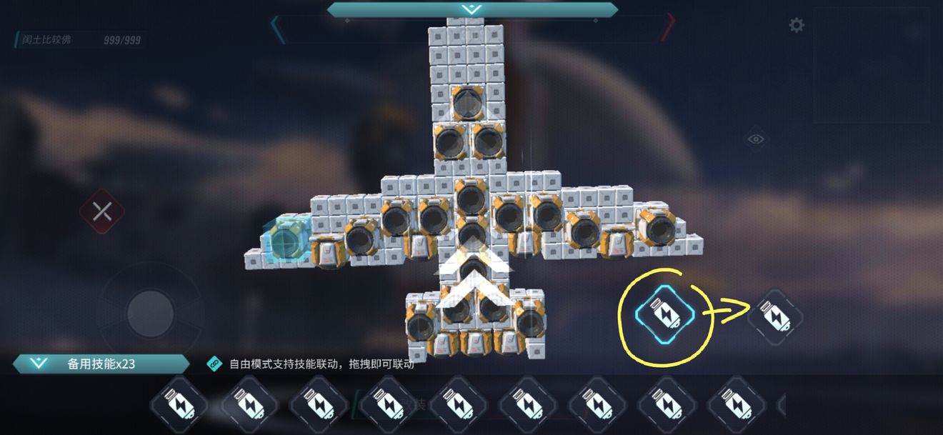 然后下面的备用技能栏里面就会出现许多按钮,每个按钮分别对应一个推进器,将他们部分合并。