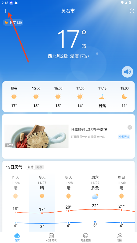 4.切换至长期预报页面,能浏览未来 40 天的温度变化、降水概率等信息,助力中长期行程规划。