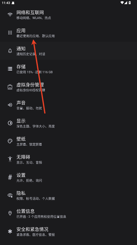 1.点击手机设置