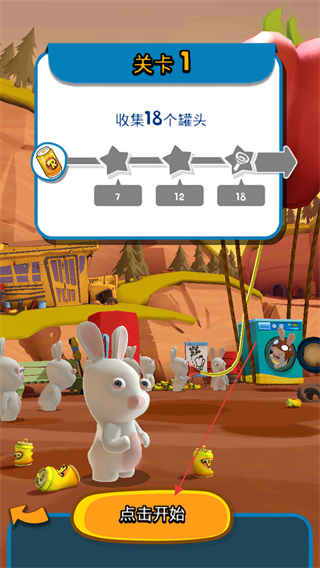 1、查看关卡1目标为收集18个罐头,点击点击开始进入游戏。