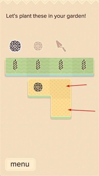 1、观察界面上方呈现的植物图标,选择对应植物,将其拖动至下方花园区域的空位处,完成首次种植操作。