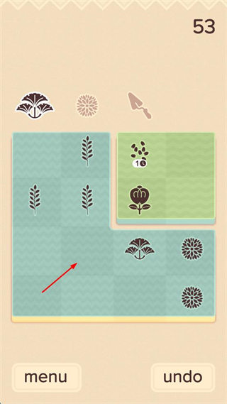 2、确认种植区域的布局,查看已种植植物的分布,选取新的植物图标,拖动到花园内的空白格子中,继续补充种植。