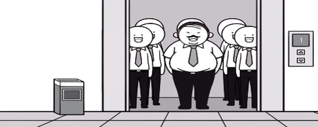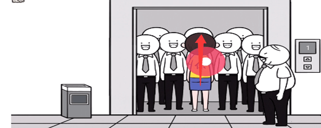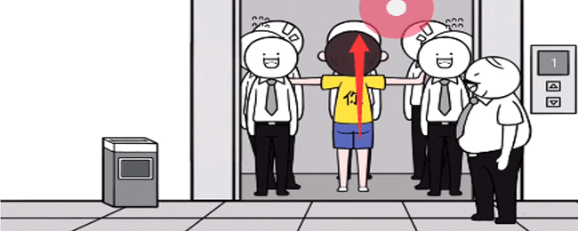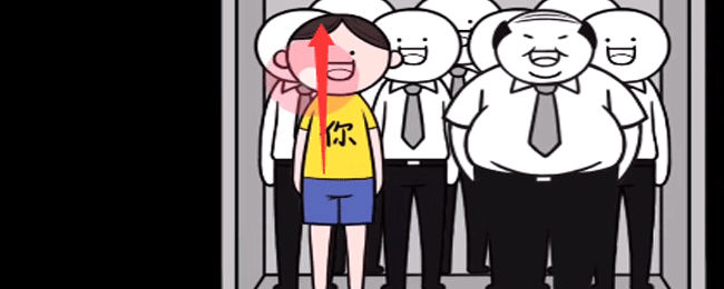4、在电梯中老板会放屁,此时立即上滑举手,吸引目光。