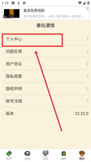 2、在个人页面选择【个人中心】选项,进入对应的页面,可查看个人资料等信息哦。
