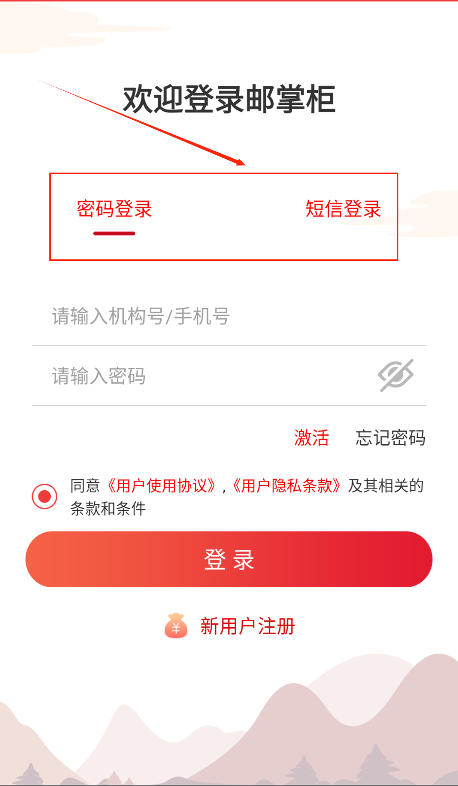 3、也可直接密码或者短信登录。