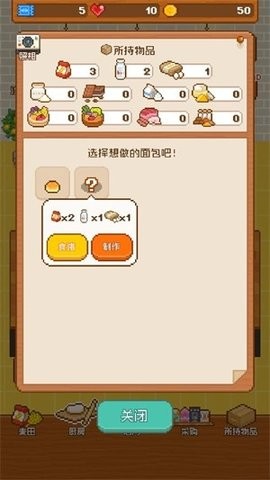 4、金币收益:出售面包可获得金币,点击采购按钮可用金币购买更多配料,解锁更多食谱。
