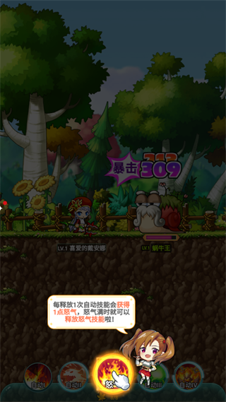 5、每释放一次自动技能会获得1点怒气,怒气满时就可以释放怒气技能啦