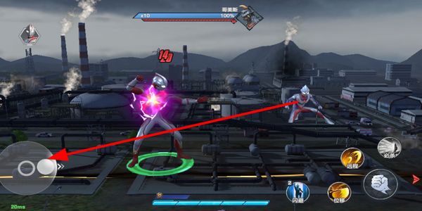 2、操作移动控件控制奥特曼在场景中移动,调整位置靠近敌人,为后续的攻击操作创造有利条件。