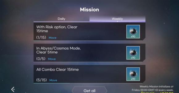 点击菱形以收起或展开,展开后再次点击任务界面可以查看任务的详细信息。找不到地方可以点击蓝色move直接跳转。每日任务好像可以打没买的曲,任务完成之后会重新锁上。