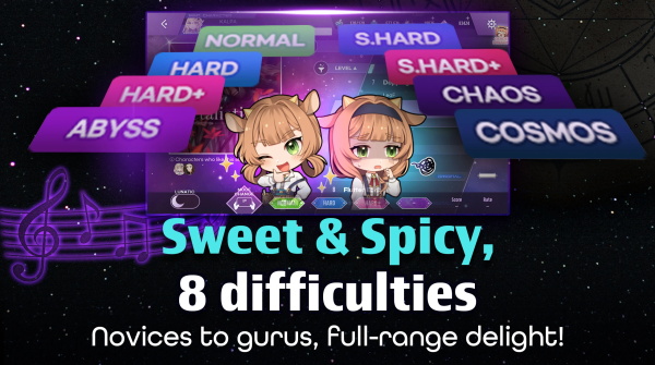 随着音符的速度和密度的增加,玩家必须有更敏感的反应,快速点击出现的音符以获得经验。