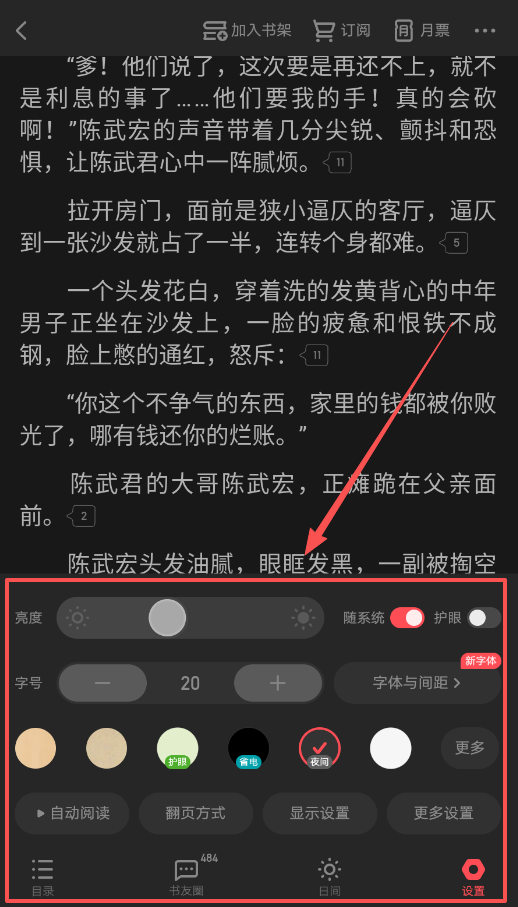2、在阅读小说时,可以自定义文字颜色、背景、字体大小以及阅读进度。