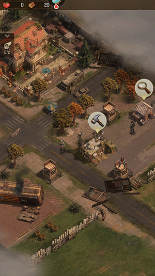 5、来到希望镇,点击地图上的树木可以砍树,点击废弃的建筑可以修复,点击垃圾可以探索...