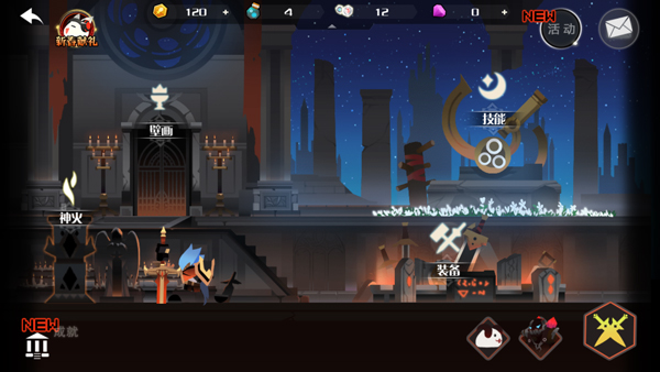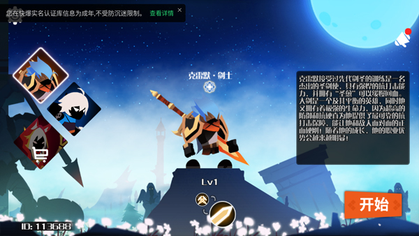 2、进入游戏如图,游戏采用横版格斗闯关玩法;