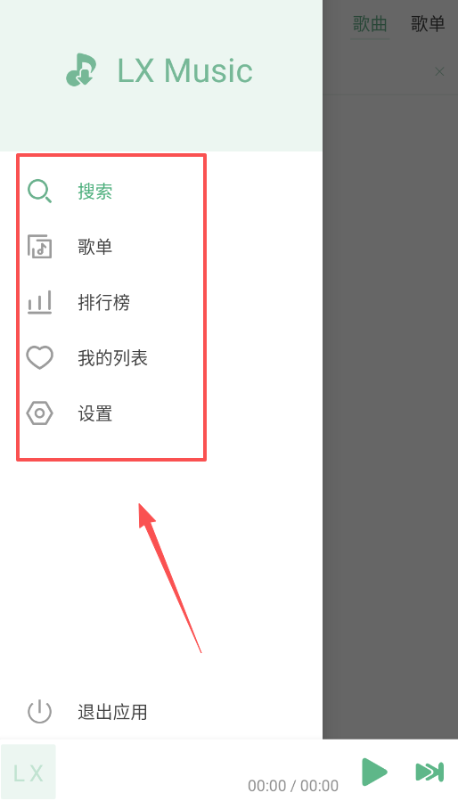 4、整个应用的操作逻辑很清晰,主要功能都在左侧导航栏,想找什么歌用搜索,想系统听就用歌单,最后记得从菜单底部退出应用。