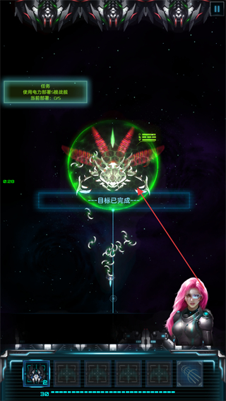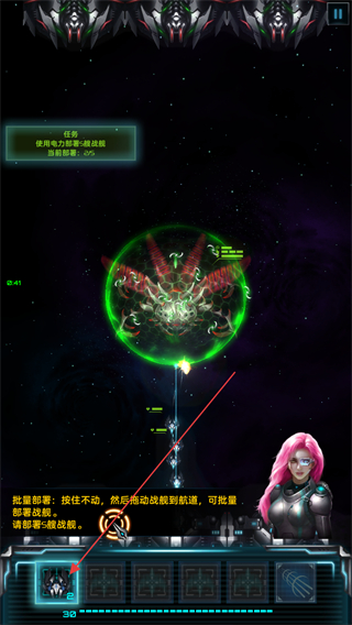 1、查看任务提示,需移动战舰到轨道内位置,在非轨道位置释放技能击败病毒。
