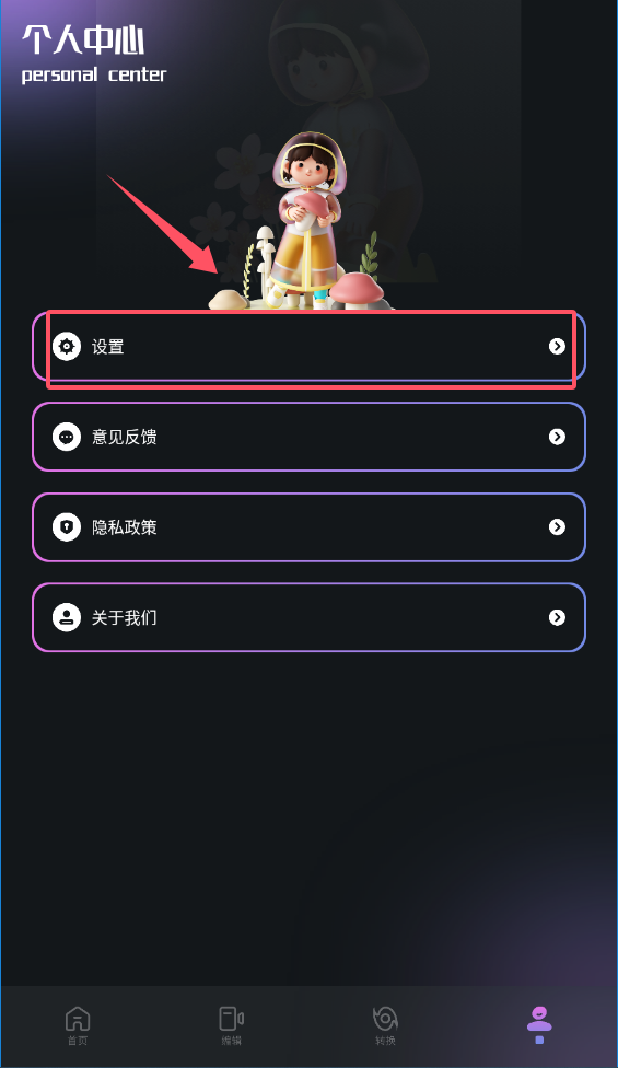 4、“我的”个人中心内有“设置”入口,你可以在此管理“个性化推荐”开关,查阅“用户协议”,进行其他个性化配置,让软件更贴合你的需求哦。