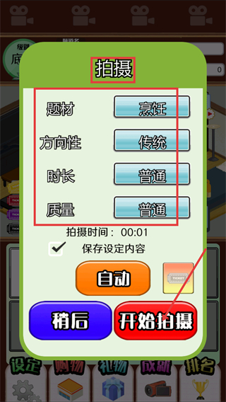 3、进入【拍摄】设置界面,确认【题材-烹饪】【方向性-传统】等参数后,点击【开始拍摄】按钮启动内容录制。