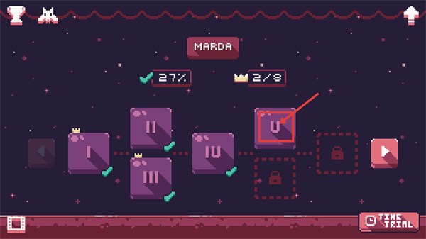 1、在【MARDA】界面中,当前进度【27%】-皇冠【2/8】,点击标有【V】的方块,可进入对应关卡继续推进游戏进程。