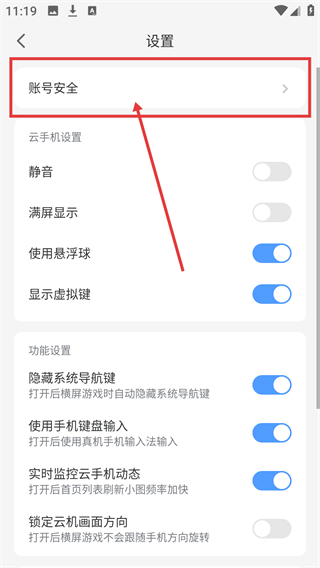 2、在设置界面点击【账号安全】,进入账号与安全界面,可处理账号安全相关操作啦。