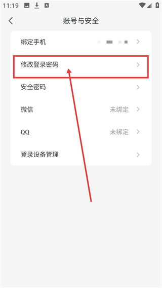 3、在账号与安全界面点击【修改登录密码】,进入密码修改的选择界面哦。