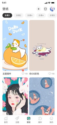 2、爱主题的壁纸涵盖10余种分类,总量超千款,每日更新热门IP联名、节日限定主题及设计师原创作品。