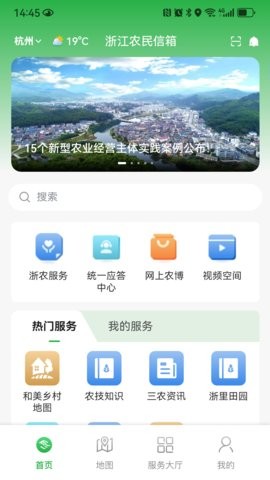 浙江农民信箱app是由浙江省农业农村大数据发展中心官方推出的“三农”综合信息公共服务平台,其内聚焦农业生产、经营、管理全流程,平台设有首页、地图、服务大厅、我的四大核心板块,整合了产销、农技、办事、政策、培训、气象六大核心服务。其中,浙江农民信箱不仅能让用户获取农业政策、市场动态等资讯,还能实现农技咨询、农产品产销对接、惠农政策申报、农业保险办理等一系列操作,同时适配不同农业从业者的需求。