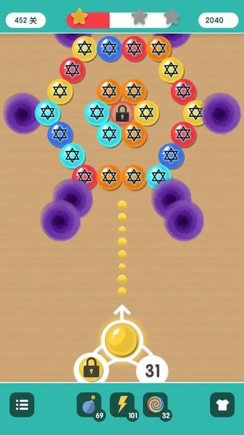 2、不同角度射击:消除气泡需要使用策略和技术,从不同角度和不同程度的力量进行射击,才有最佳的消除效果。