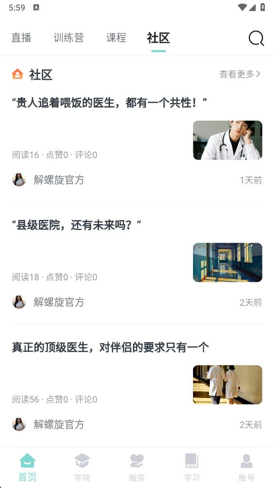1.进入解螺旋app之后,点击下方的【账号】。