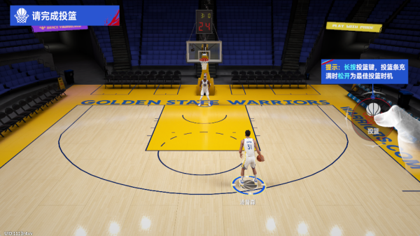 2、进入蓝色区域后,长按右侧的投篮按键即可进行投篮;