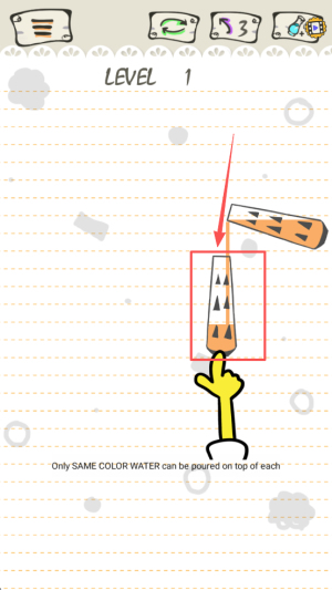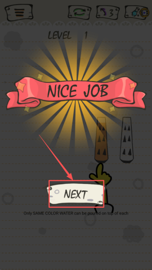 1、开启解谜准备:选择目标关卡,观察初始瓶子内的色彩分布,熟悉一指操作的滑动逻辑,明确 “同类颜色归置” 的核心目标。