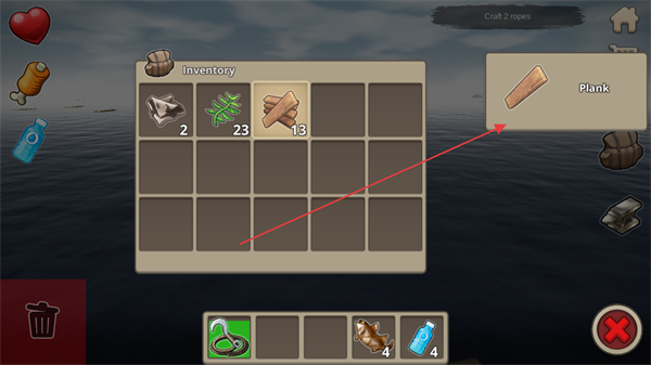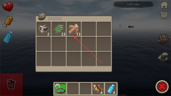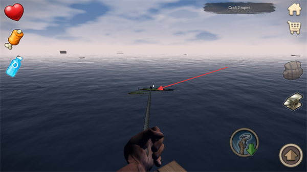 1、根据任务Craft2ropes,瞄准海上木板类物资,用钩子钩取。