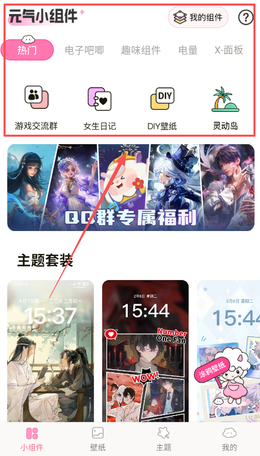 2、想让桌面风格更统一,主题功能是关键,通常一键即可应用,组件和壁纸会自动配套,非常省事。