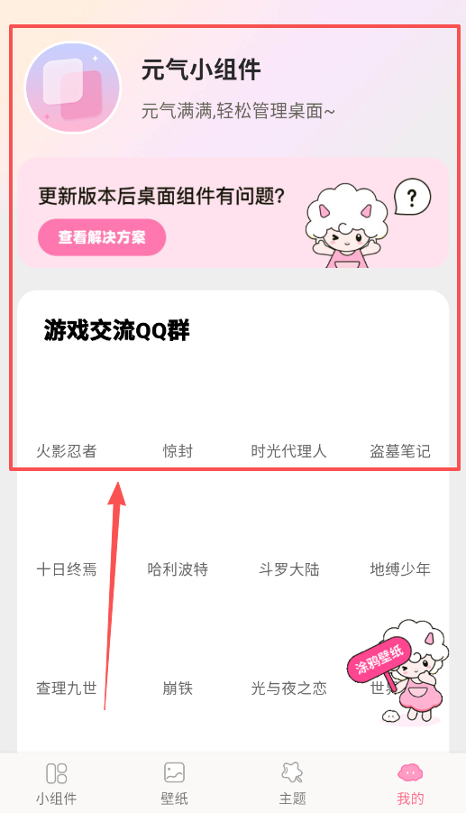 3、如果你是某个动漫或游戏的粉丝,个性化设置会更简单,直接在主题区的搜索框输入作品名。