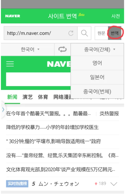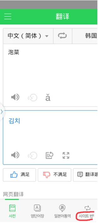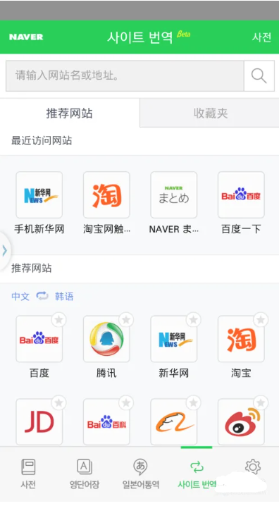 2、点击栏里的第四项 ”사이트 번역“, 使用网页翻译功能。