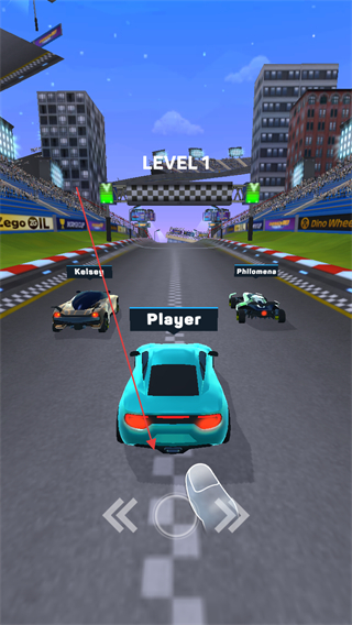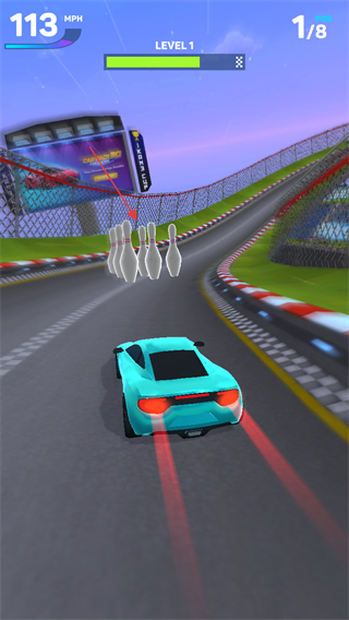 4、遇到赛道中的保龄球道具,撞击它们可触发效果,助力在LEVEL1中保持优势,完成赛程。