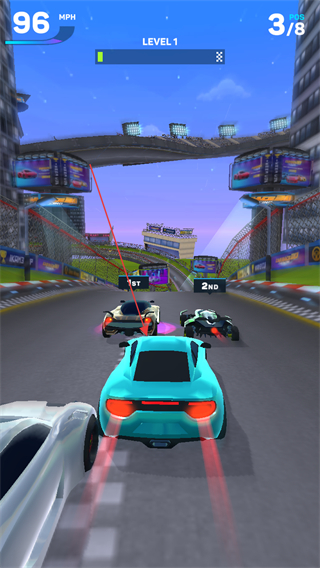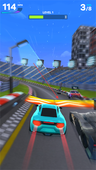 3、借助赛道加速带彩色光效区域提升速度至114MPH,超车对手,稳固比赛中的领先位置。