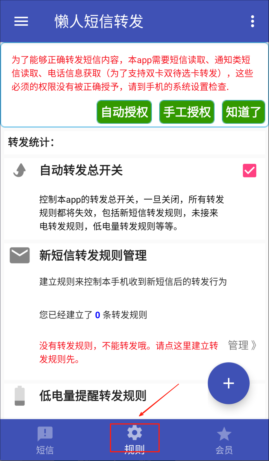 懒人短信转发是专为安卓设备设计的智能通讯管理工具,支持将短信内容按自定义规则转发至微信、邮箱或网页端,内置来电提醒与低电量预警功能,用户可设置关键字过滤或全量转发策略,通过云端同步实现多终端实时接收,有效提升信息处理效率与工作协同能力。