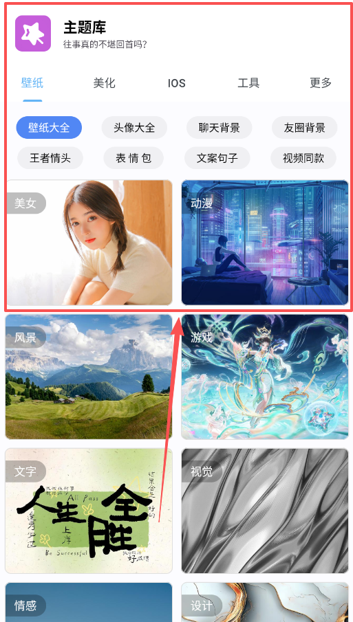 1、初次使用,建议从顶部菜单的“壁纸”或“美化”开始,浏览“壁纸大全”里的各种分类,点击图片就能直接应用。