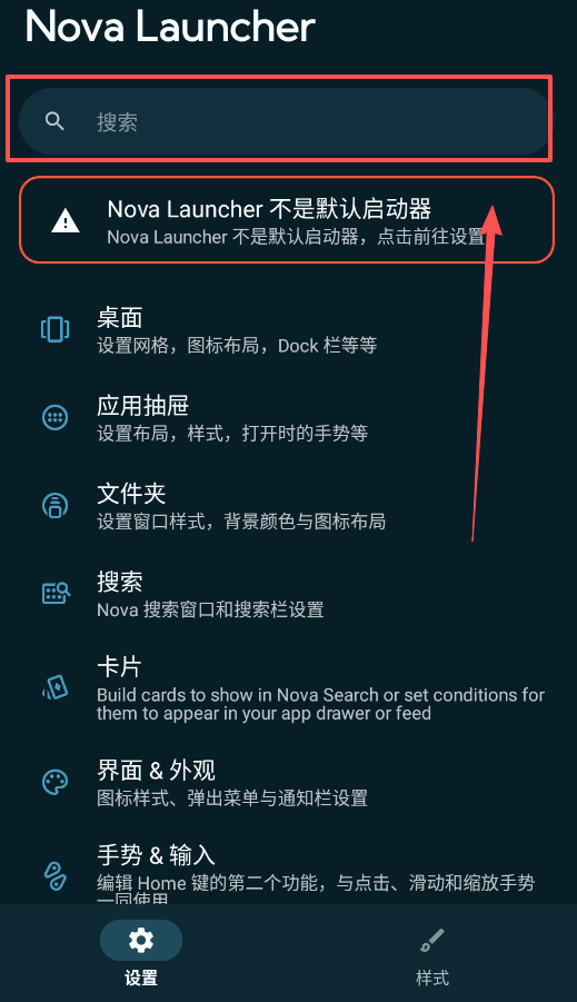 1、启动 Nova 后首先确保它被设为默认,如果应用提示你不是默认启动器,务必点击提示前往系统设置完成切换。