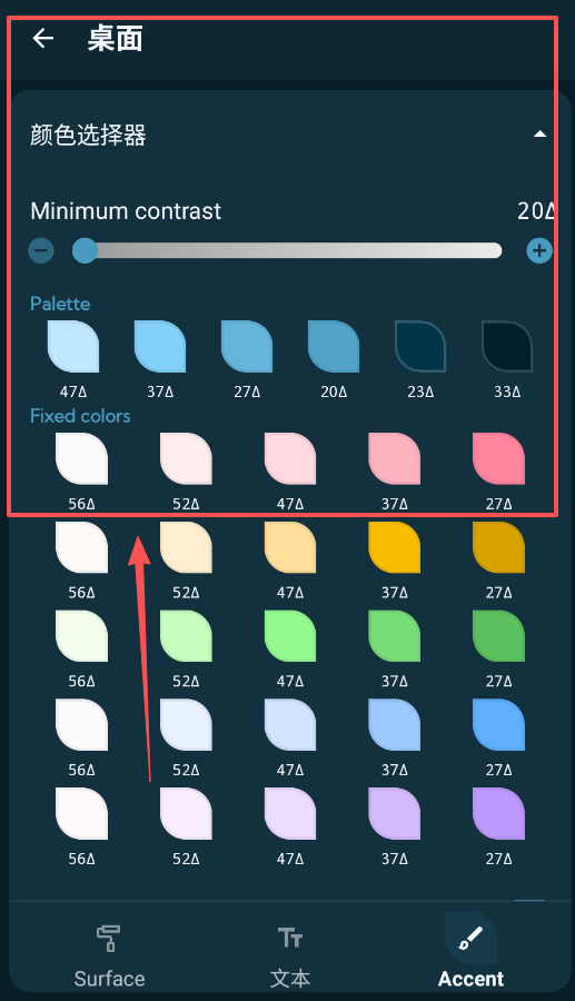 2、美化桌面从颜色开始,在“界面与外观”设置中找到颜色选择器,可以从预设调色板中选色,比如 47A 或 33A。