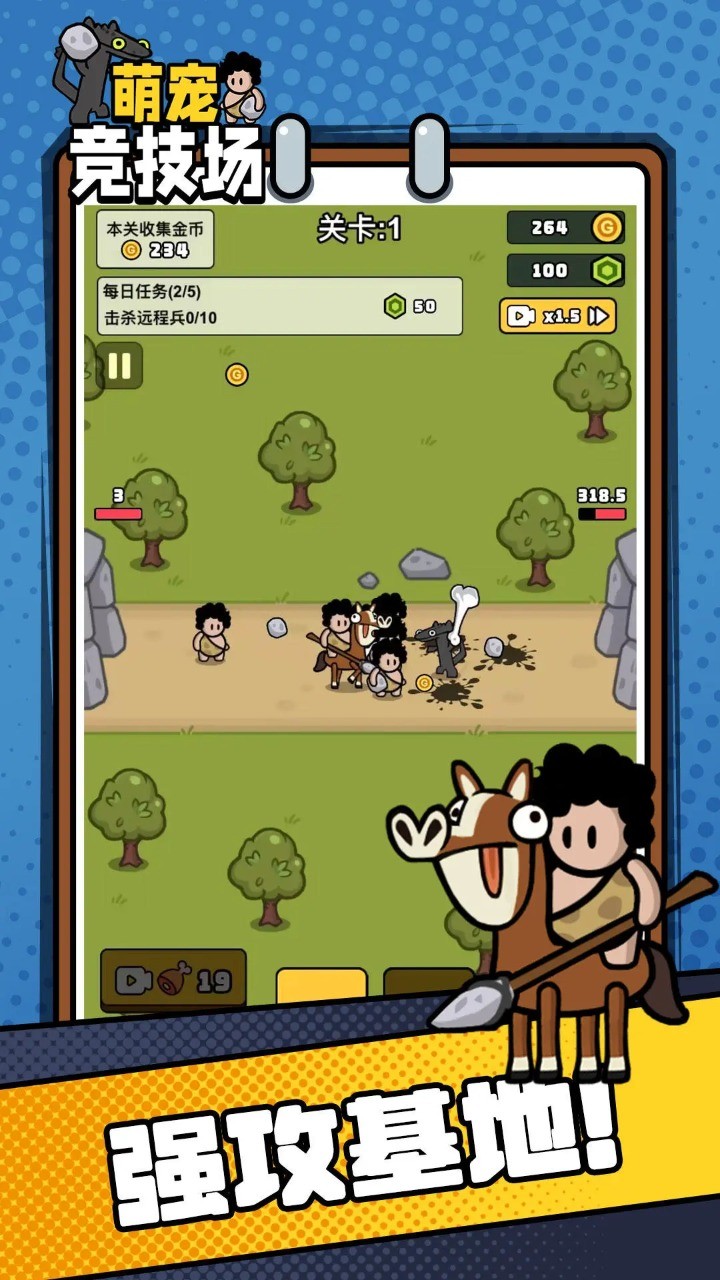 《萌宠竞技场》是一款玩法非常有趣和轻松的游戏,有放置战斗和挂断的策略,玩家将控制他们的可爱宠物,在竞技场上进行激烈的竞争,每只可爱的宠物都有其独特的能力和技能,需要利用它们的特点来制定战术,装备和成长系统还为玩家提供个性化的训练计划,玩家可以前往原始人类的世界进行充满激情的冒险和战斗,所有游戏内容和体验也非常好,攻击这里的任何敌人并摧毁基地,非常适合玩家在无聊的时候玩这个游戏。