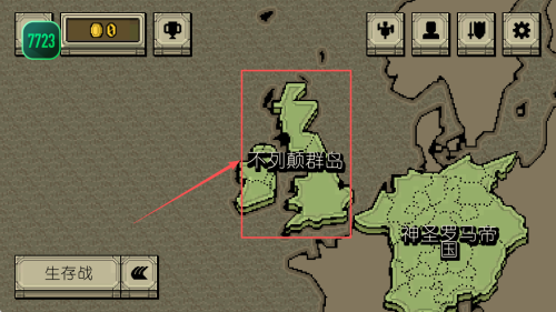 3、选择地图:在地图选择界面,选择“不列颠群岛”或其他地图,点击“生存战”开始。