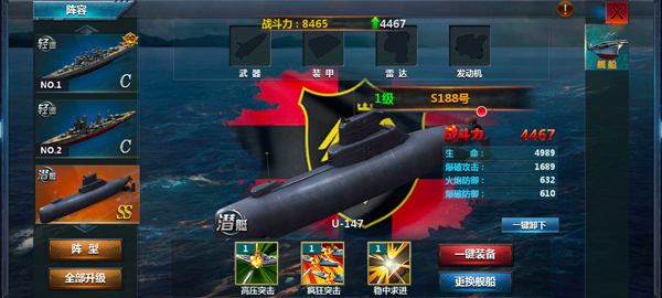 5、点击阵容,玩家可选择要上阵的舰船;