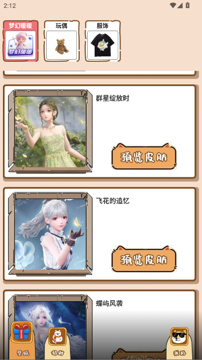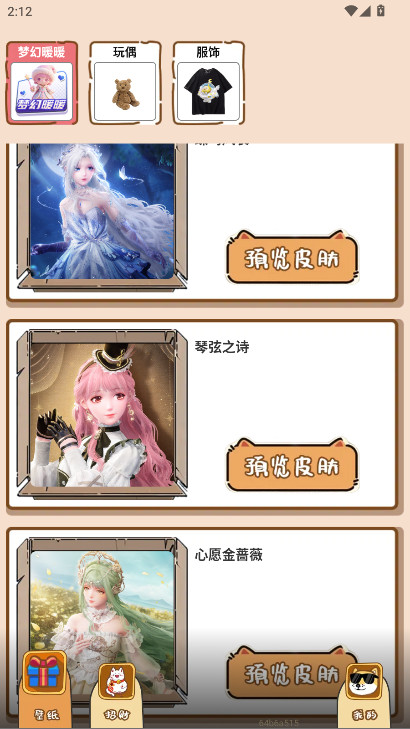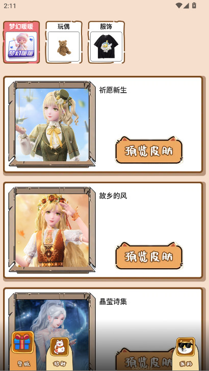 1.打开梦幻换皮社,往下滑,选择并点击我们喜欢的皮肤后面的预览皮肤。