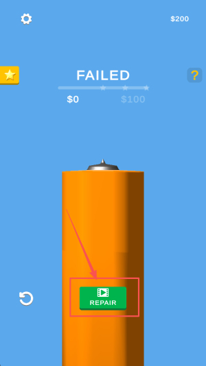 4、修复失败:在$200 FAILED $O $100界面点击REPAIR重新挑战。