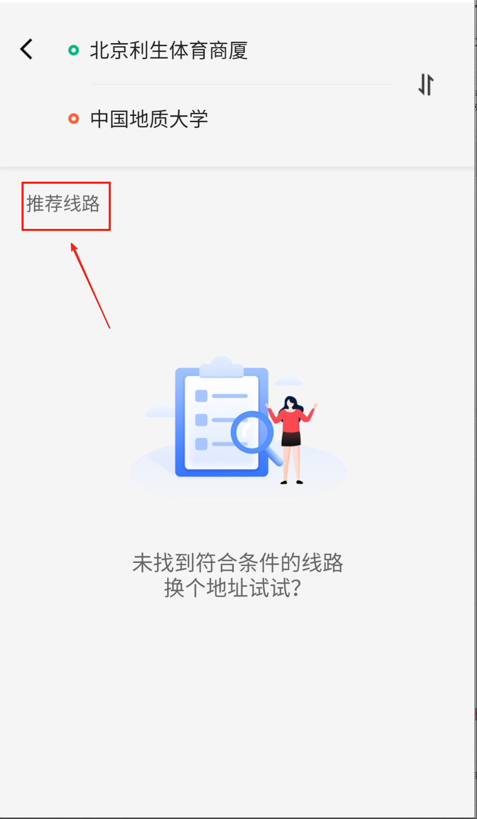 3、点击下方“推荐线路”。
