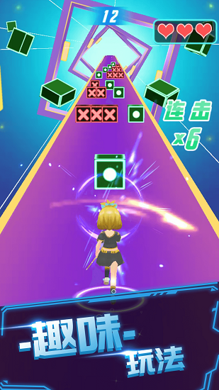 1、把握好音乐节拍,完成音乐节奏“卡点”,抵达终点完成挑战。