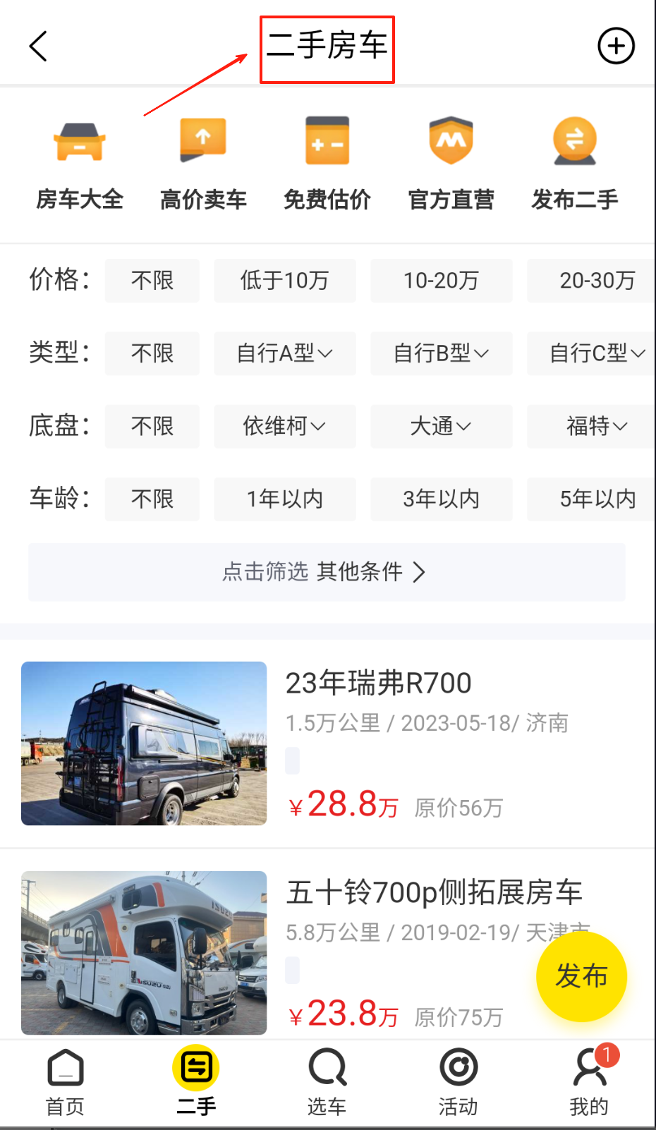 3、软件还支持二手置换功能,多种二手房车供你选择。