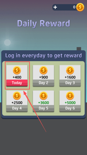 1、领取奖励:在DailyReward界面点击Day2领取+400。